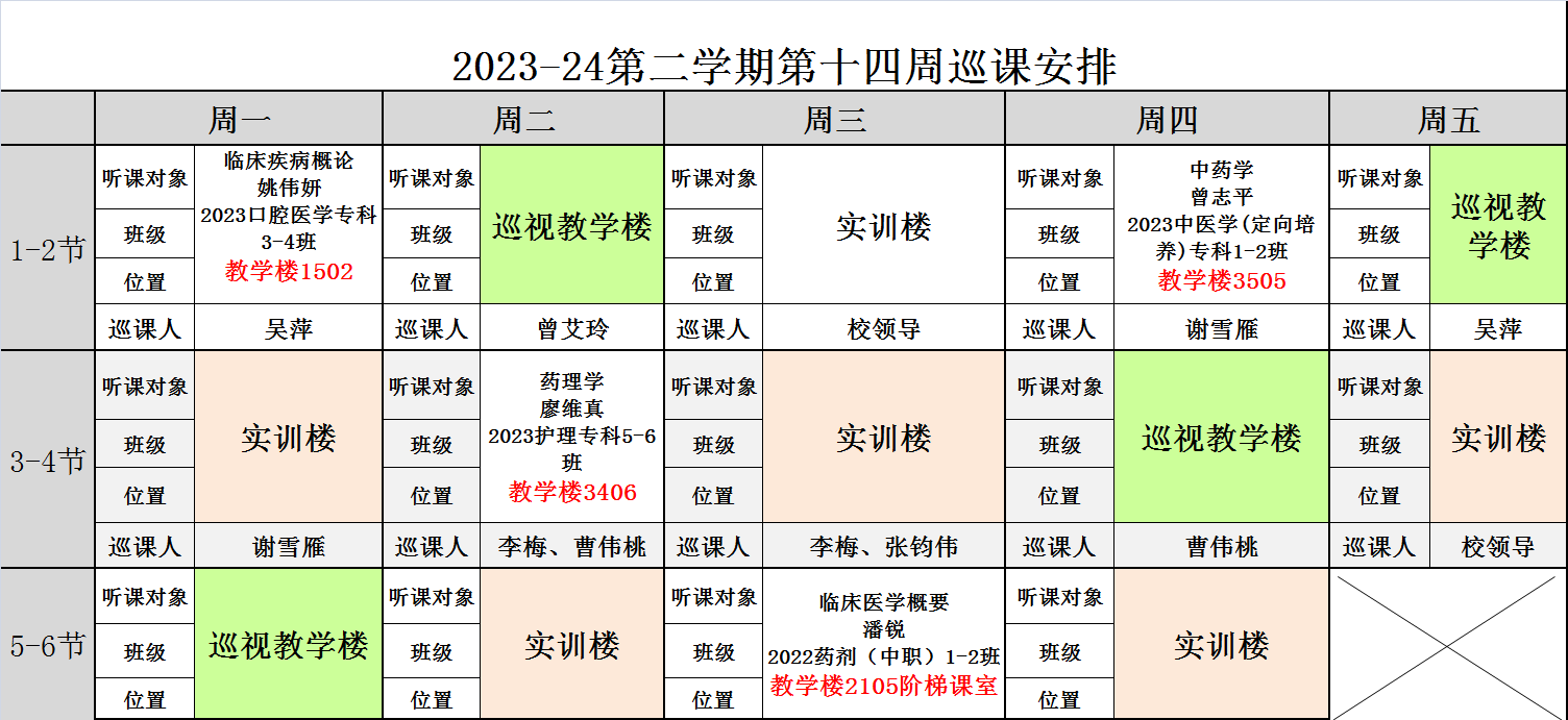 2023-24学年第二学期第十四周督导安排